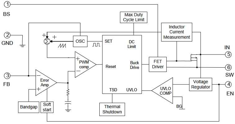 多重保護功能:包括過熱關斷、輸入欠壓保護、BS欠壓保護和短路保護,確保芯片和系統的安全。