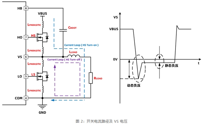 當控制信號HIN為低電平,LIN為高電平時,高側(cè)功率器件關閉,低側(cè)功率器件導通,電流從負載返回輸入端。