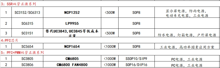 SSR雙管正激系列是鼎芯微電子推出的一類(lèi)高性能電源管理芯片,適用于高功率應(yīng)用場(chǎng)景,如顯示屏電源、防雨電源、電動(dòng)車(chē)充電器、工業(yè)電源等。以下是該系列部分型號(hào)及其替代型號(hào):