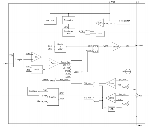 1/2GND芯片地,同時也是集成高壓MOSFET的源極
