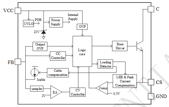 VCC 供電模塊:為芯片內部的各個模塊提供穩定的電源,確保芯片的正常工作。