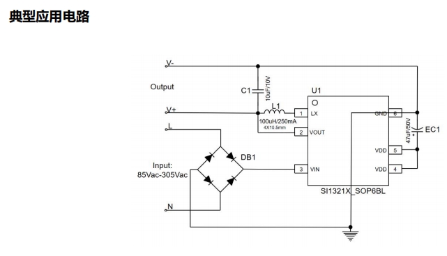 SI1321X系列芯片設(shè)計注重緊湊性與易用性,兼容CD32/43貼片電感和0410色環(huán)電感,無需額外的π型濾波或安規(guī)電容即可滿足EMI標(biāo)準(zhǔn),大大簡化了電路設(shè)計。此外,輸入端免去了高壓電解電容的使用,進一步降低了成本和體積,使得該芯片在空間受限的應(yīng)用場景中更具優(yōu)勢。