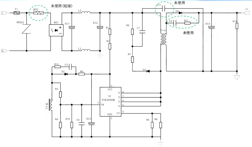 FT8395HB 12V1.0A六級適配器電源方案解析(無Y電容設計的突破)