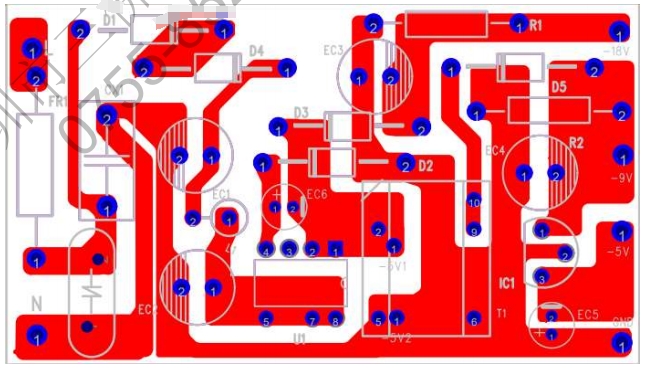 PCB設(shè)計(jì)對于電源的性能和穩(wěn)定性至關(guān)重要。本方案采用單面板設(shè)計(jì),元件分布合理,布線簡潔明了。以下是PCB的頂面和底面布局圖: