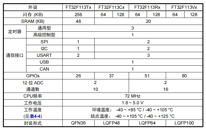 FT32F103C8AT7提供128K的閃存,適合需要較大存儲空間的應用。它與STM32F103RBTx兼容,能夠替代大多數高性能應用。
