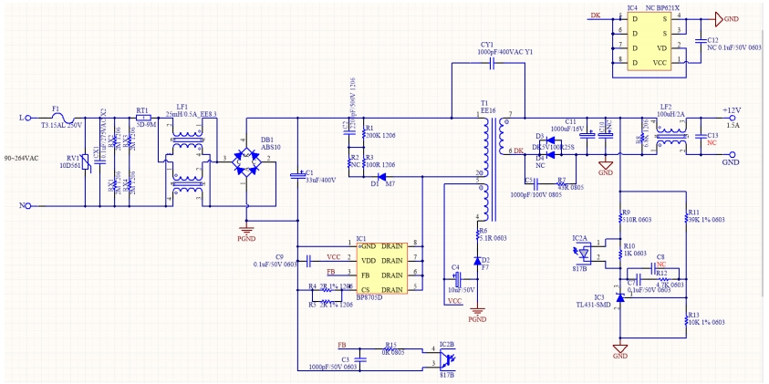 BP8705D參考設計:12V/1.5A 電源方案詳解(變壓器規格及PCB設計)