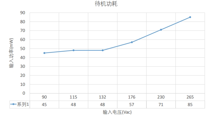 在230VAC輸入條件下,待機功耗僅為73mW,滿足低功耗設計要求。