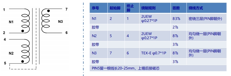 輔助繞組(N3):8匝,三層絕緣線,均勻繞一層