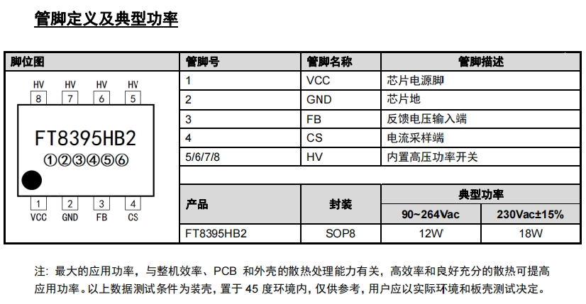 一句話總結(jié):HB2 把能調(diào)的模擬指標(biāo)都往“更精、更穩(wěn)、更低待機(jī)”方向擰了一圈。 在同為 SOP-8 封裝且外圍幾乎不變的前提下,F(xiàn)T8395HB-RT 的 12 V/1 A 與 FT8395HB2 的 5 V/2.4 A 其實(shí)只差變壓器匝比和 FB 分壓——官方把匝比從 12 V 方案約 11:1 調(diào)到 5 V 方案約 6:1,再把次級(jí)整流管換成 40 V 肖特基即可;芯片本體無需改動(dòng),真正實(shí)現(xiàn)“一顆料,兩檔功率”。