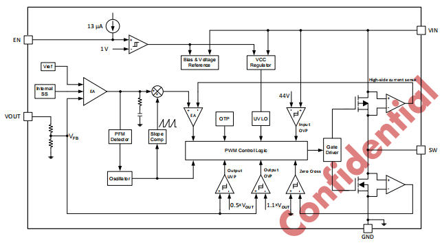 • 反饋環:內部0.8V參考,直接采樣VOUT,誤差放大器→COMP→電流比較器