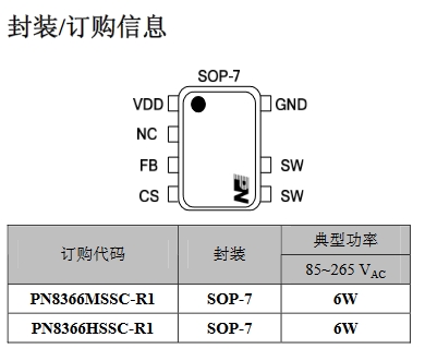 PN8366SSC-R1M芯朋微SOP7/6W 原邊控制器電源芯片