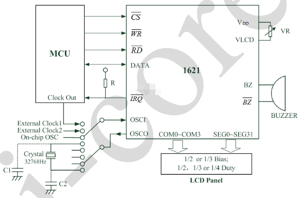 CS1621是一種128點陣式存儲映射多功能LCD驅動電路。CS1621的S/W結構特點,使它適合點陣式LCD顯示,包括LCD模塊和顯示子系統,CS1621還具有節電功能。