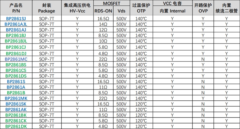 晶豐明源BP2861系列和BP2863系列雖然在基本功能上相似,但BP2863系列提供了更多的集成功能和控制選項,適用于更復雜的應用場景。用戶在選擇時,應根據具體的應用需求和設計要求來決定使用哪款芯片。