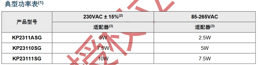 KP2311ASG:這款芯片設(shè)計用于5W的輸出功率,在230VAC ± 15%的條件下,能夠提供2.5W的功率。它適用于需要較低功率輸出的應(yīng)用,如小型充電器。
